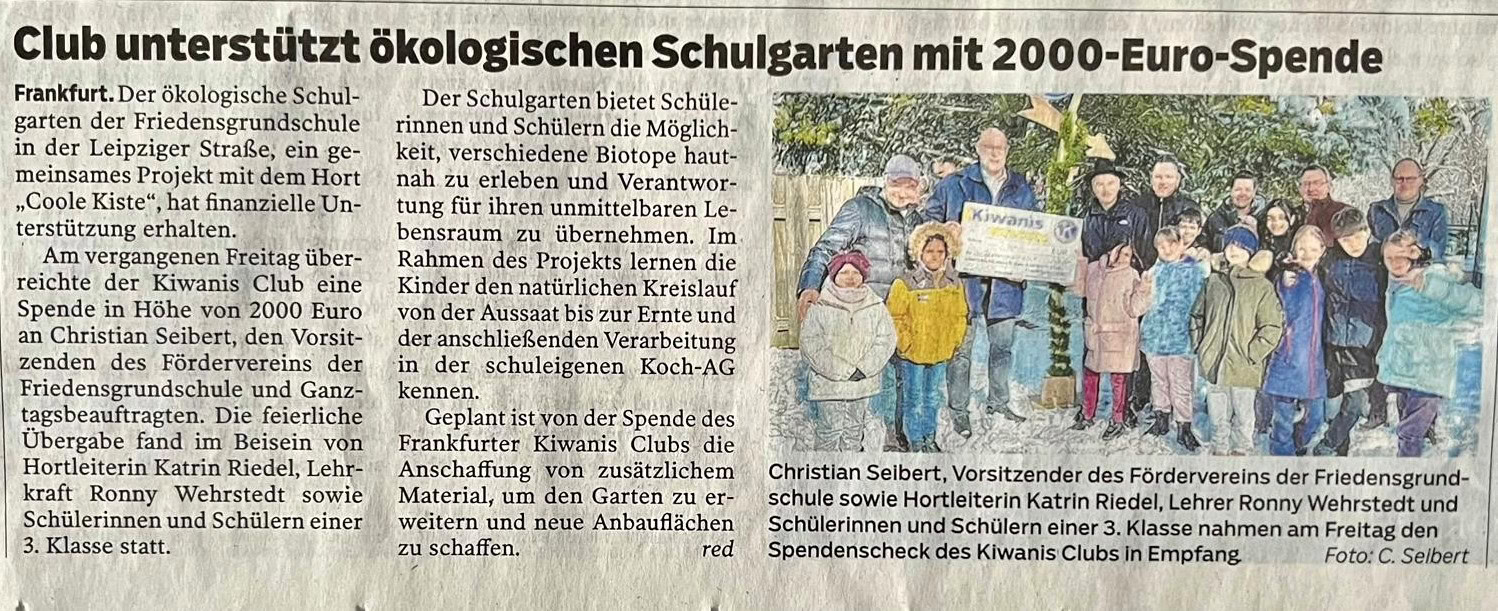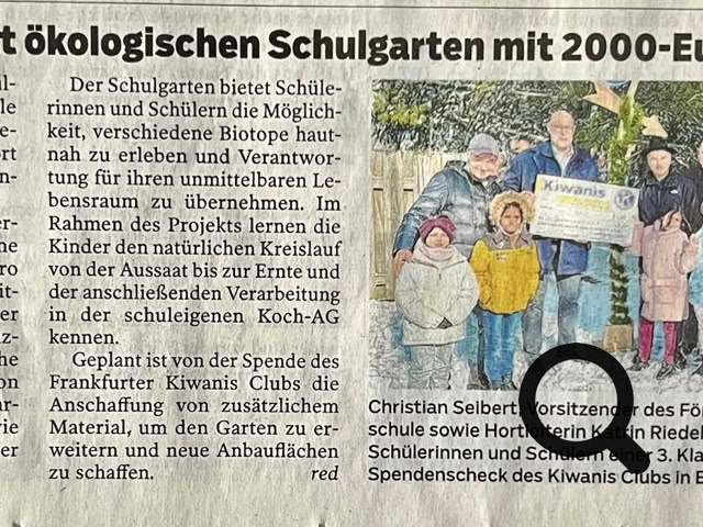 Mit einer Spende von 2000 Euro unterstützt uns der KIWANIS bei unserem Vorhaben.