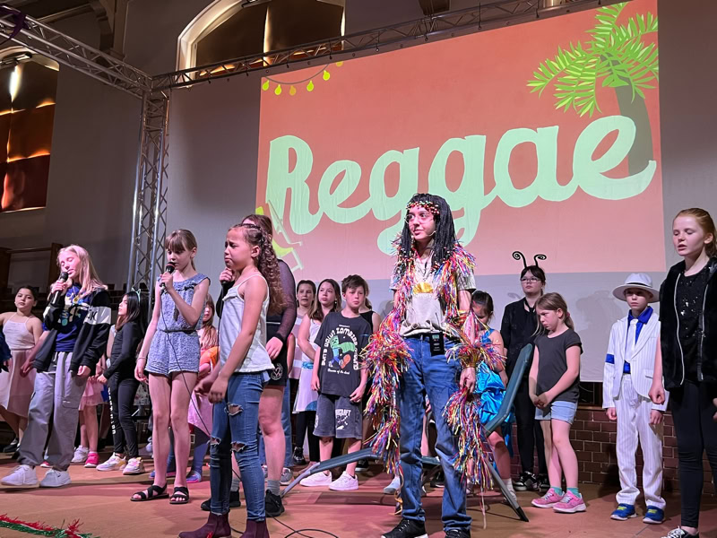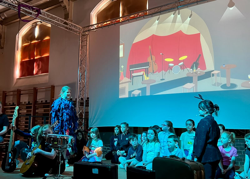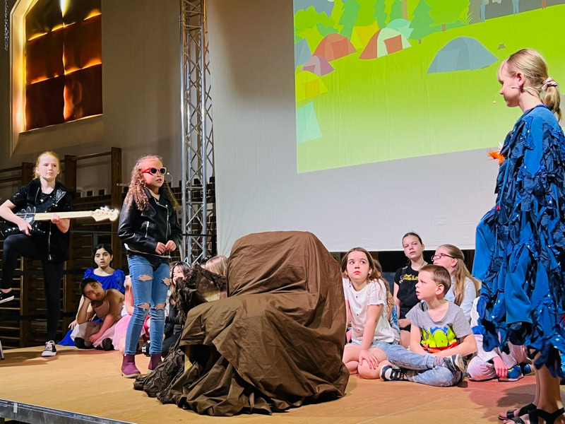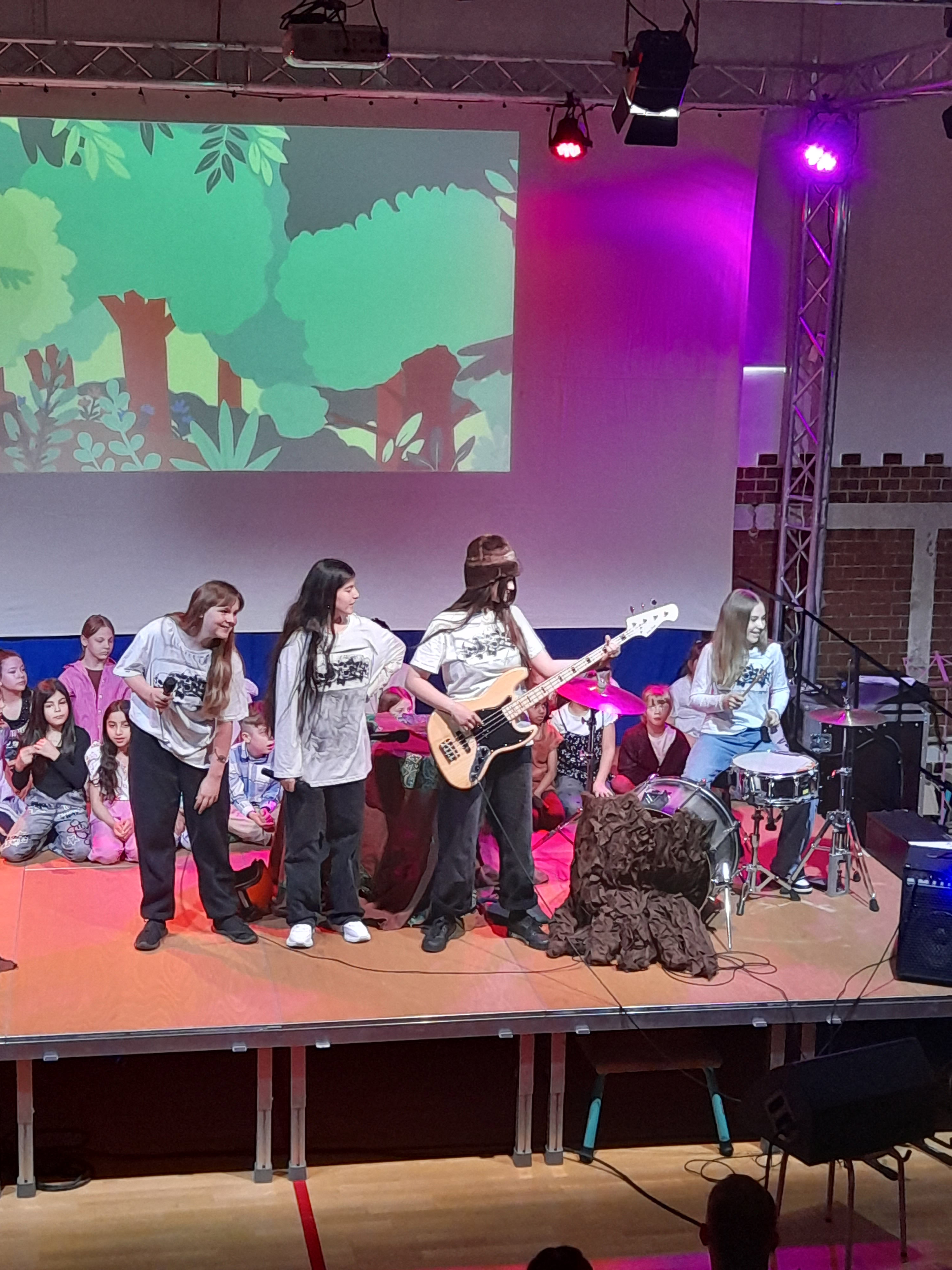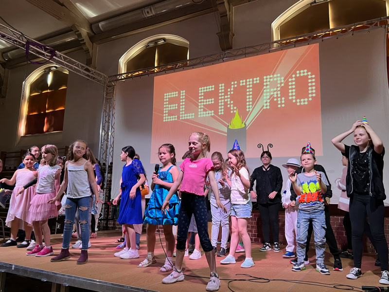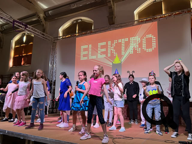 Gleich acht verschiedene Musikrichtungen hatten die Schülerinnen und Schüler für ihre Gäste im Gepäck und sie hatten sichtlich Spaß an dem was sie in den vorangegangenen Monaten einstudiert und geprobt hatten. Gleich zwei Aufführungen standen auf dem Programm. Am Samstag, den 4.Mai 2024 konnten sich die Eltern, Verwandten und andere Gäste gemeinsam mit Eule auf eine Reise durch die verschiedensten Genres mitnehmen lassen. Das selbe Vergnügen hatten dann am Montag, den 6.Mai 2024 auch alle Schülerinnen und Schüler der Friedensgrundschule.
