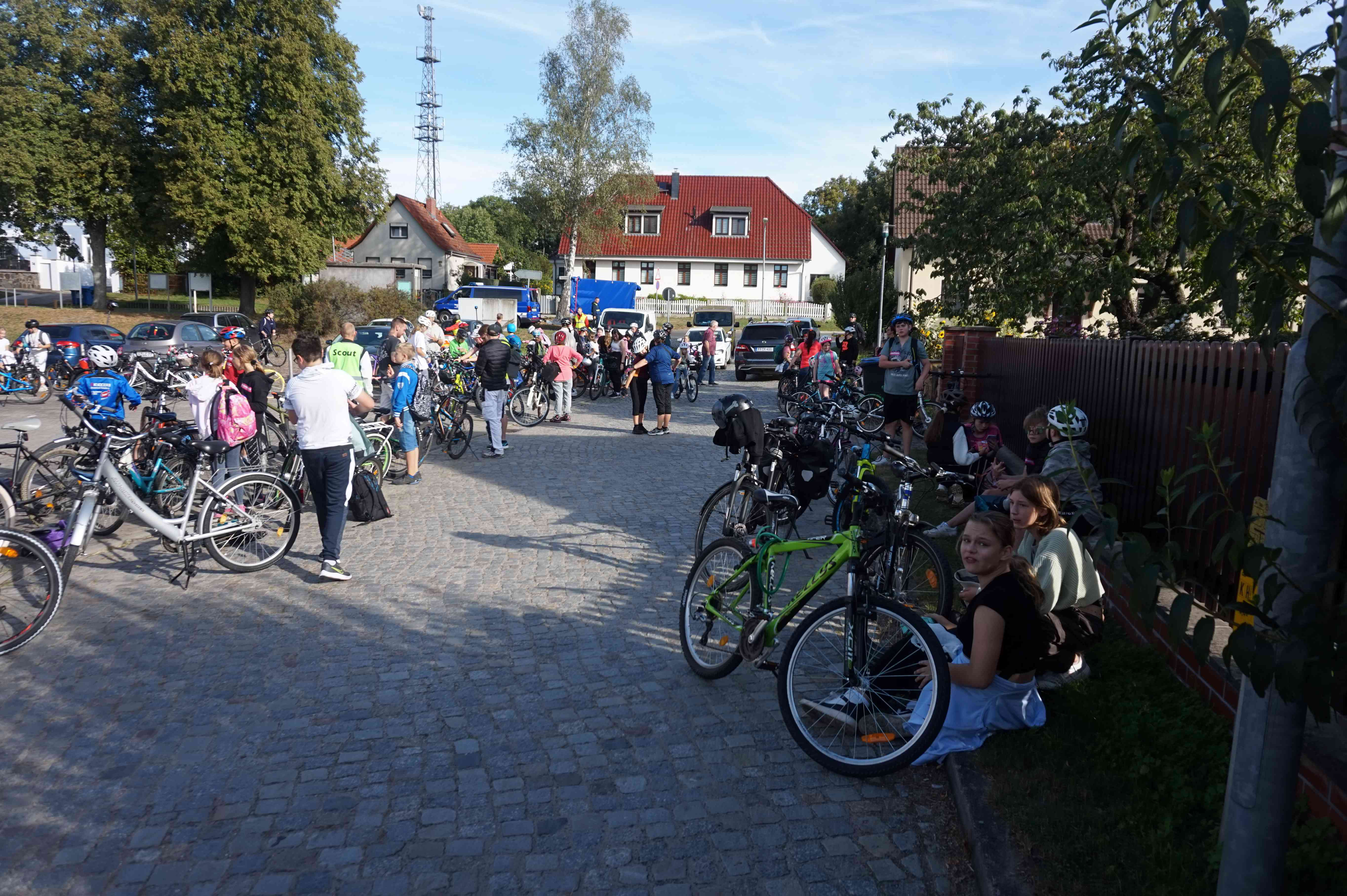 Weltkindertag am 20.09.2023 und wir treten fleißig in die Pedale. Unter dem Motto „Radeln fürs Handwerk“ rollten wir zunächst von der Schule bergab mit dem Fahrrad zum Rathaus. Dort angekommen trafen nach und nach immer mehr Kinder und Lehrer ein. Die Turmuhr schlug 9:00 Uhr und endlich ging es los!                      Â