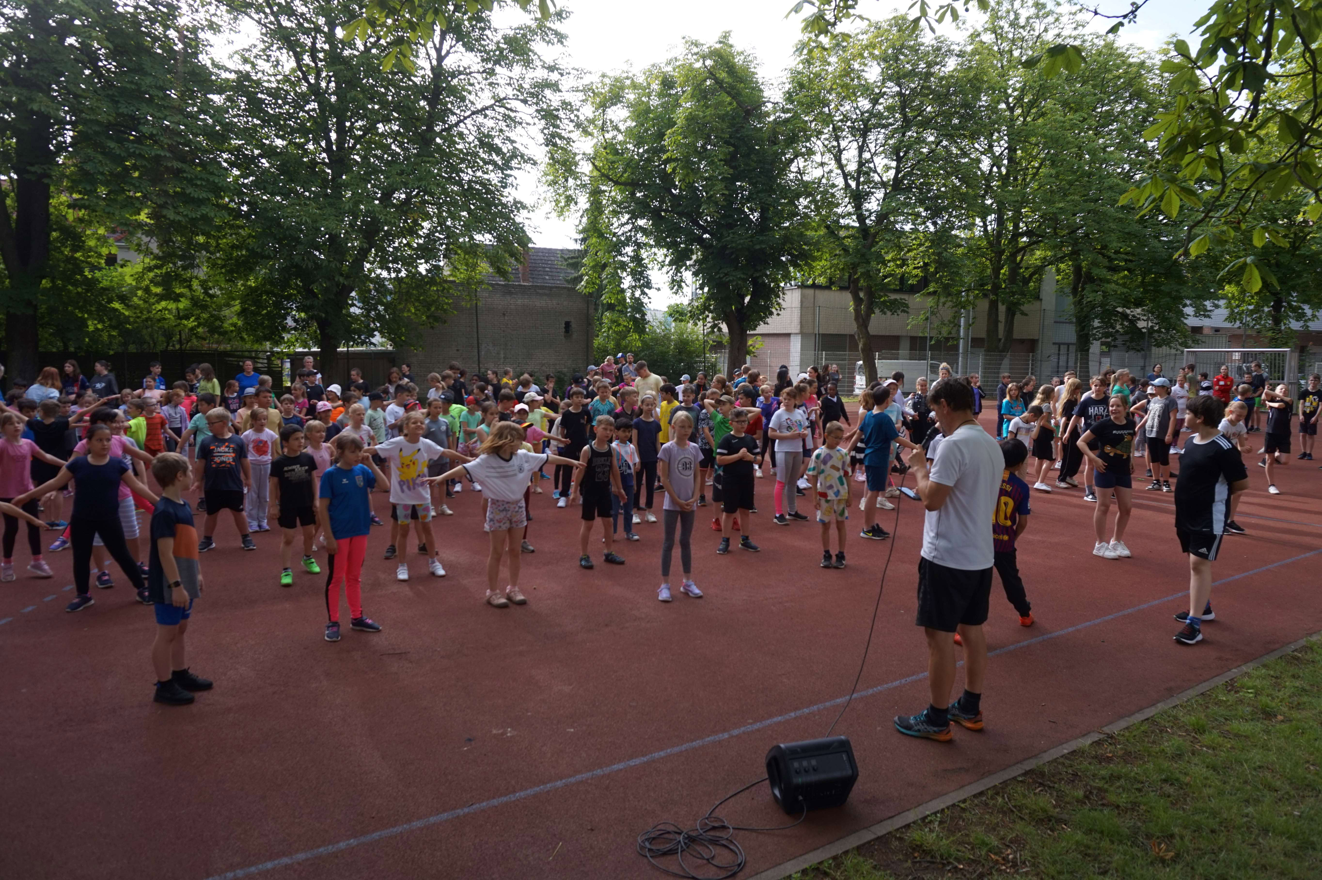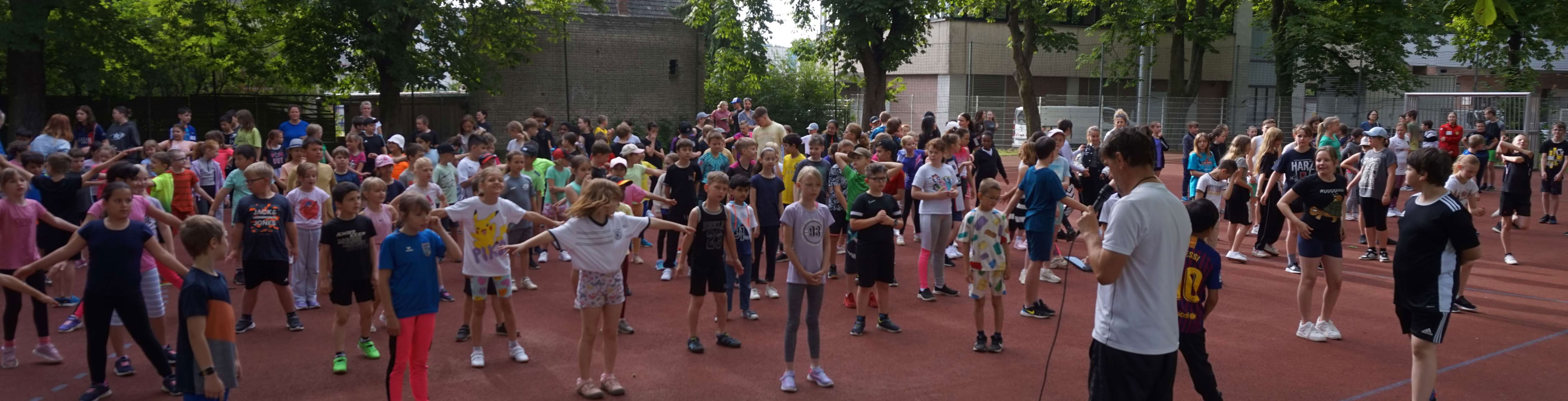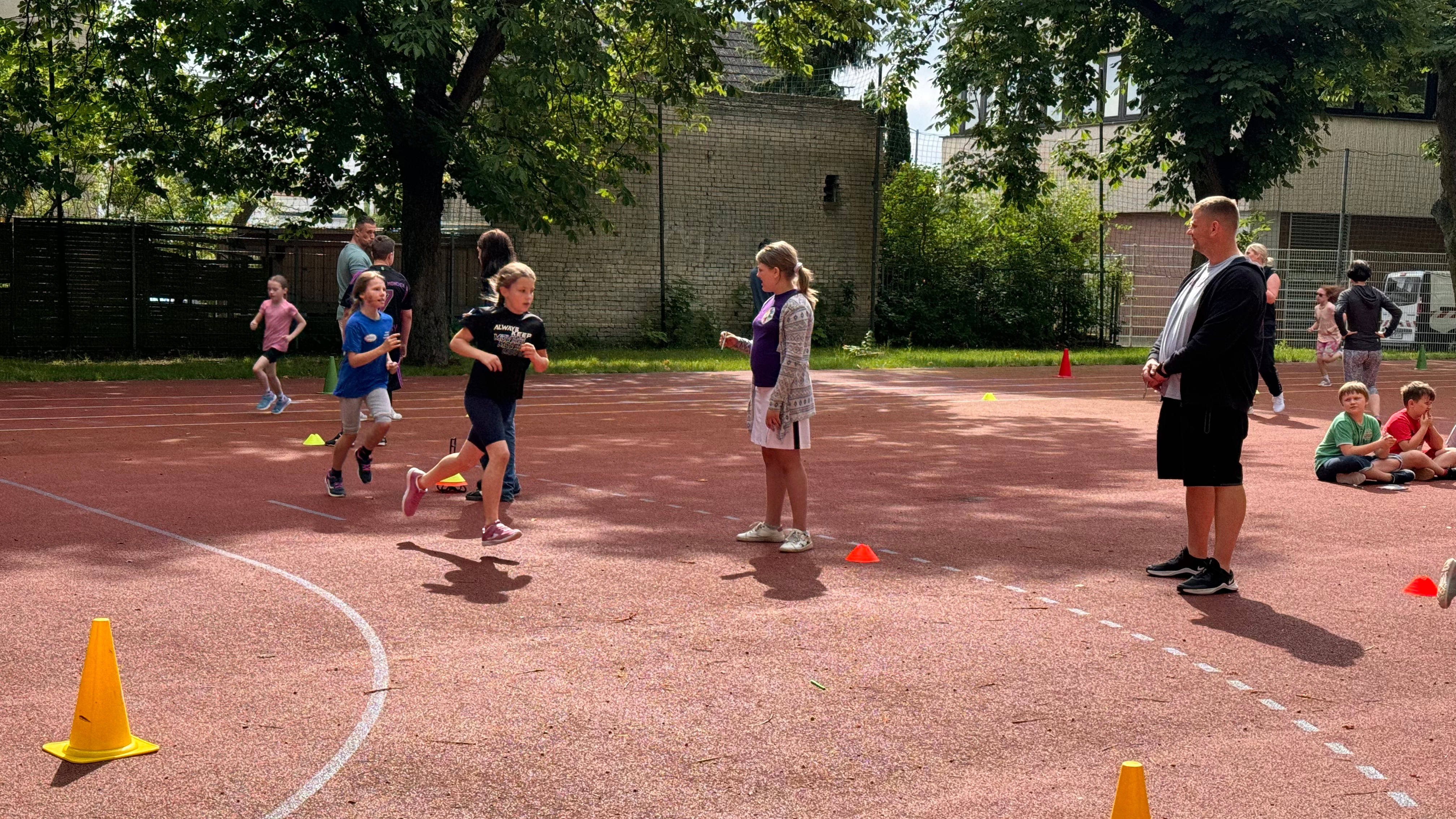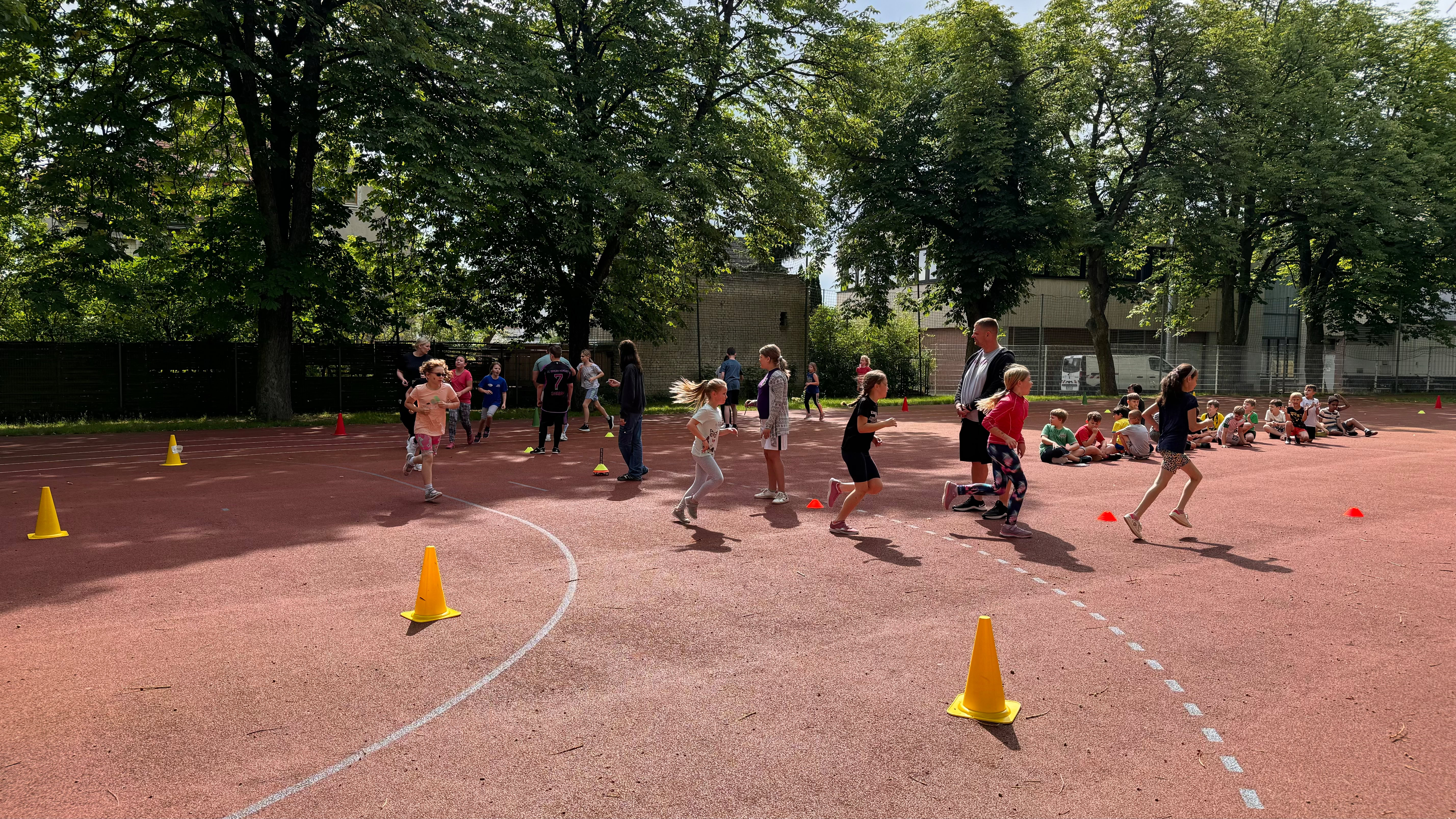 So startenten die 1-6 Klassen am 28.05.2025 voller Tatendrang in den Sponsorenlauf. Nun noch ein paar motivierende Worte von Herrn Geister und es ging dann nach einer kurzen Erwärmung an den Start. Auf die Plätze, fertig, los! Jetzt gab es kein Halten mehr und jeder wollte zeigen was in ihm steckt.