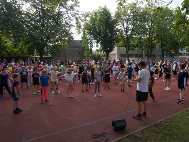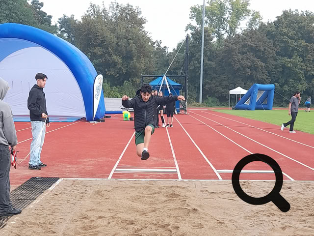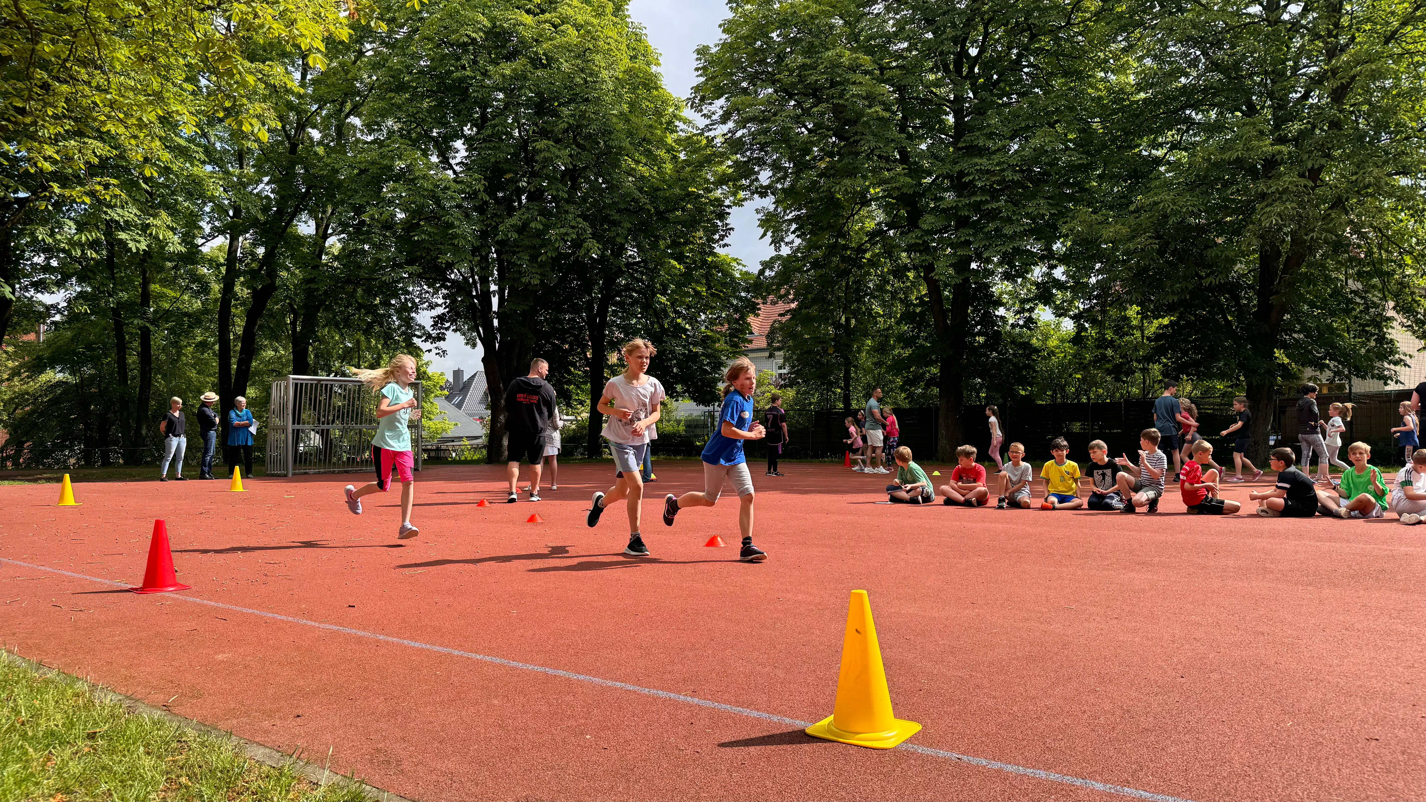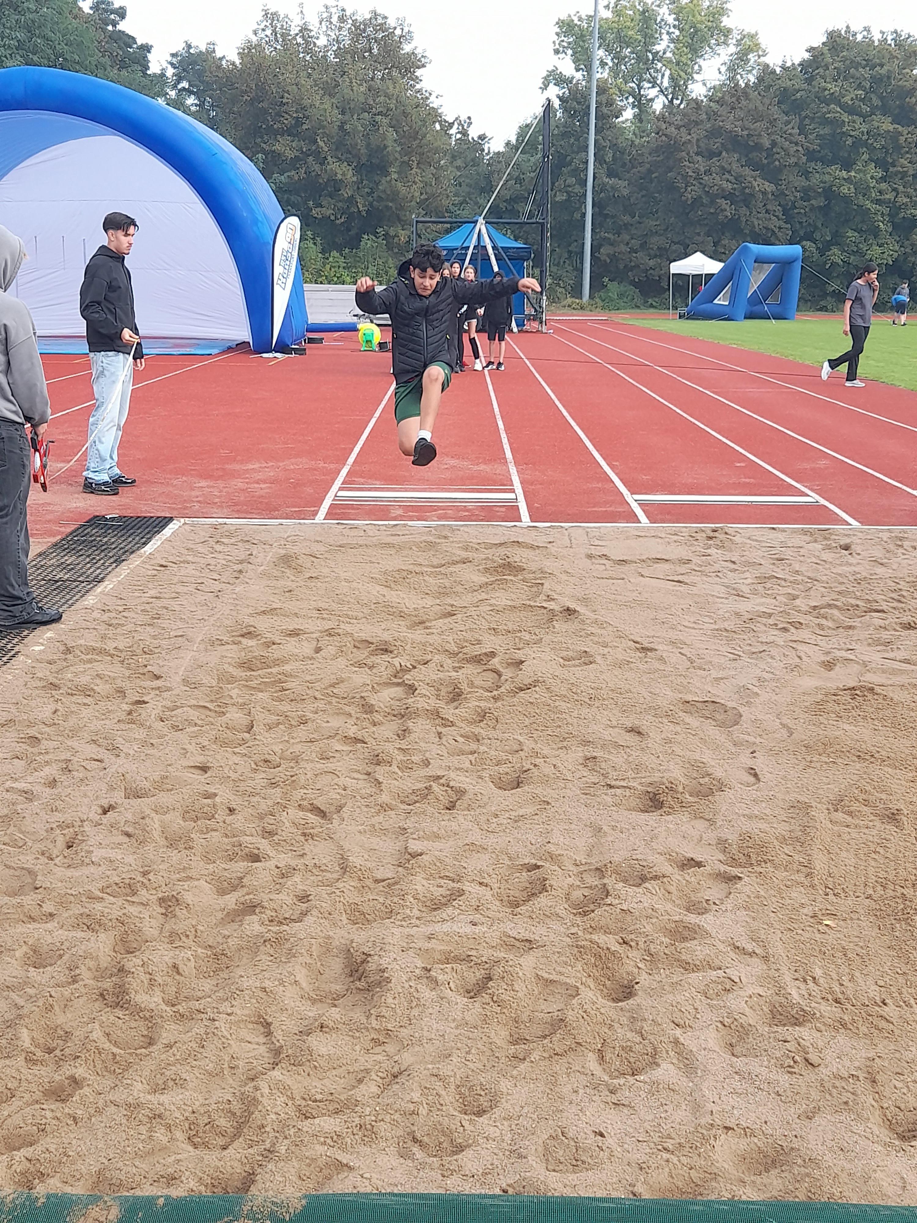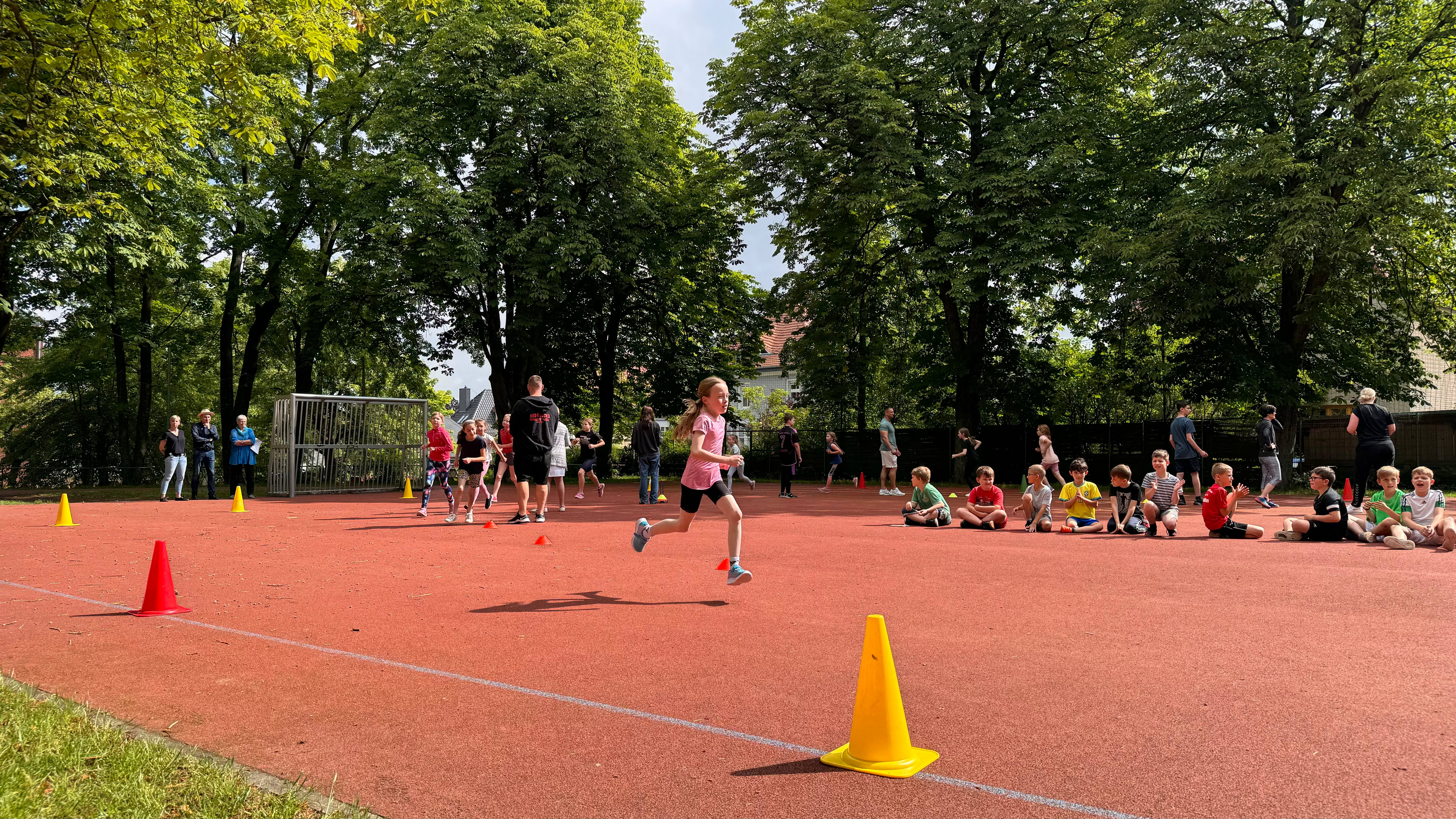 Nach einer tollen musikalischen Einstimmung durch die Schüler der 1.Klassen und einer Aufwärmung mit Herrn Geister, waren wir nun nicht mehr zu halten und viele kleinere und größere Füße konnten jetzt nicht mehr stillstehen. Völlig losgelöst von der Erde sprangen wir beim Weitsprung so weit es ging und rannten beim Sprint so schnell wie noch nie.