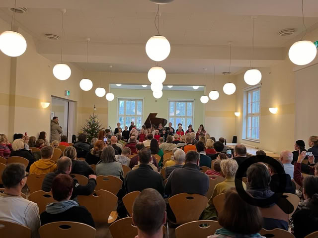 Tosender Applaus halte schließlich durch die Halle und weihnacht-liche Düfte von Kaffee, Kuchen, Crêpes und Quarkbällchen lockten den ein oder anderen Gast in die Cafeteria.