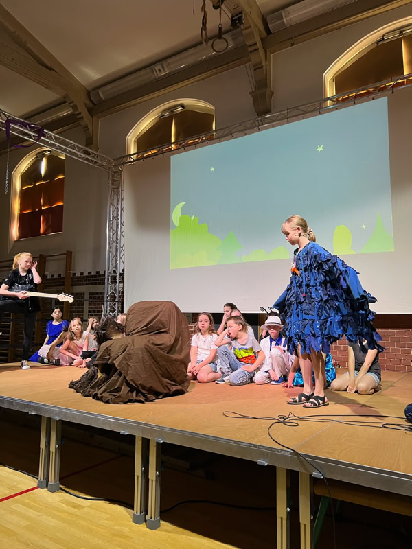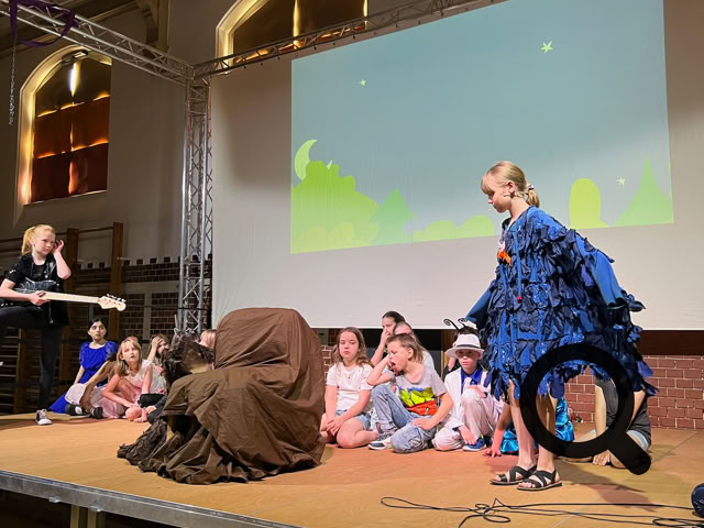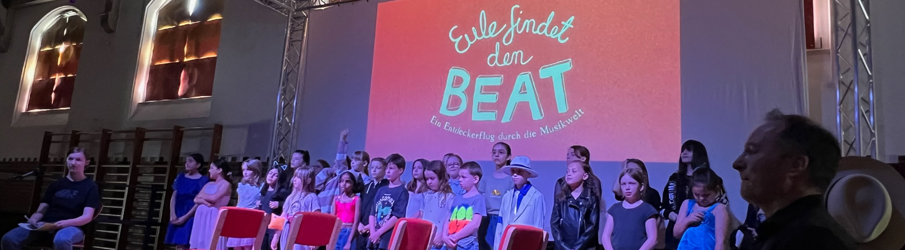 Endlich Frühling und die Eule macht sich erneut auf die Suche nach dem Beat. Wen sie wohl dieses Mal begegnen wird? Unter der Leitung unseres Musiklehrers Herrn Seibert wurde die Aufführung des Kindermusicals wieder ein riesiger Spaß für Groß und Klein. Flink füllte sich am 24.05.2025 die Sporthalle mit Zuschauern. Die besten Plätze waren schnell vergeben. Seit Wochen wurde geprobt und nun war es soweit. Schnell das Kostüm zurechtgerückt, den Text nochmal durchgehen, und dann war es da das Lampenfieber. Das Licht ging aus, die ersten Töne erklingen und die kleinen und großen Schauspieler schlüpften in ihre Rollen als hätten sie nie etwas anderes getan.