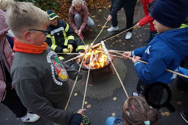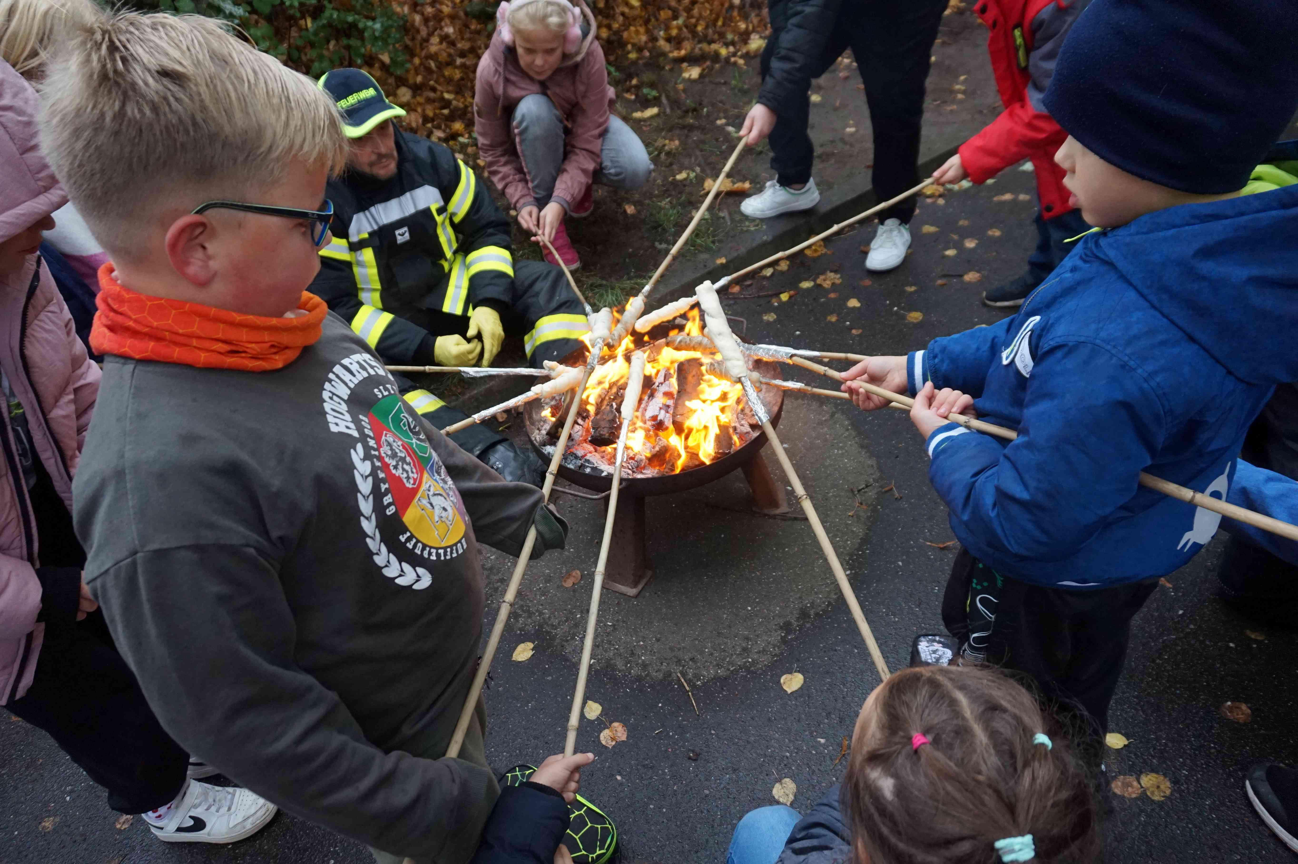 Hungrige kleine Herbstgesichter konnten sich gemütlich am Feuer ein Stockbrot backen schmecken lassen.